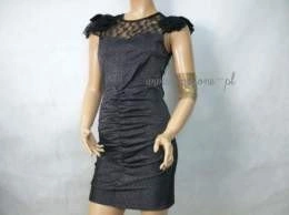 WAGGON Czarna Srebrna Sukienka Koronka