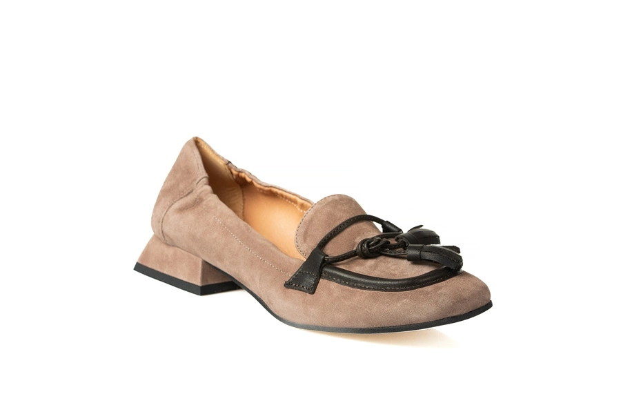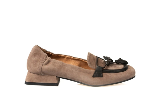 CZÓŁENKA W MODNYM KOLORZE CAPUCINO WYKONANE Z MIĘKKIEJ ZAMSZOWEJ SKÓRY. WNĘTRZE BUTÓW TO RÓWNIEŻ SKÓRA NATURALNA.
