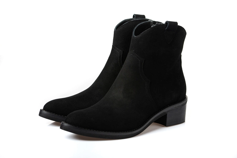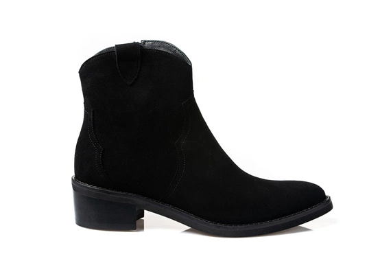 MODNE ZAMSZOWE BOTKI ZAPINANE NA ZAMEK, DZIĘKI CZEMU ŁATWO SIĘ JE ZAKŁADA. FASON KOWBOJEK Z WĄSKIM NOSKIEM. WYGODNY 5CM OBCAS.