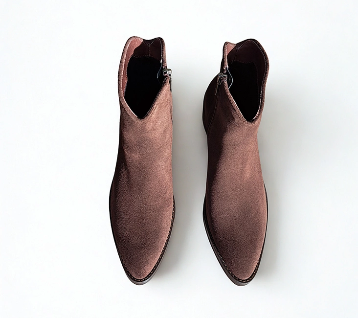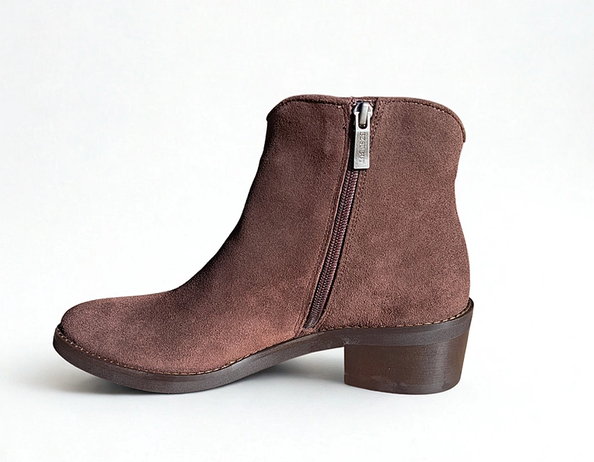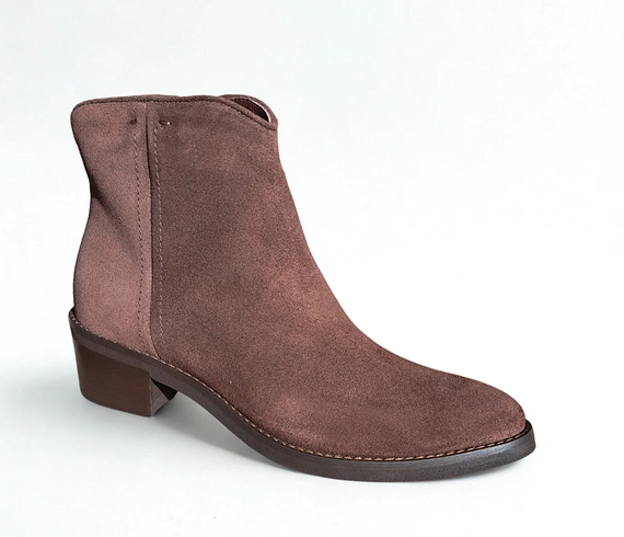 MODNE ZAMSZOWE BOTKI ZAPINANE NA ZAMEK, DZIĘKI CZEMU ŁATWO SIĘ JE ZAKŁADA. FASON KOWBOJEK Z WĄSKIM NOSKIEM. WYGODNY 5CM OBCAS.